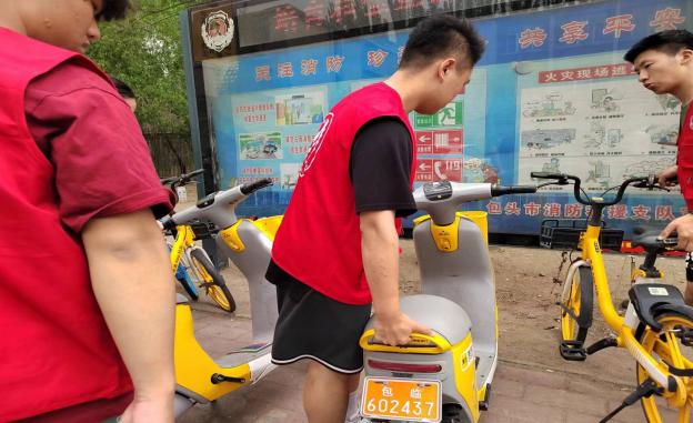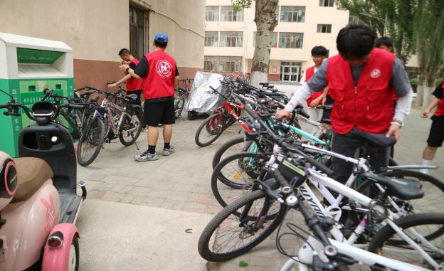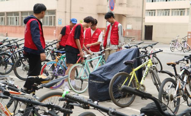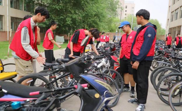 另一部分同学则承担了摆放自行车的任务。他们将随意停放的自行车一辆辆地摆放整齐,让校园的道路更加通畅,也为同学们的出行带来了便利。