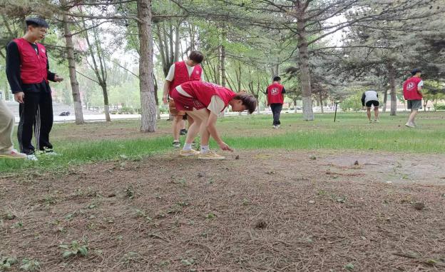 一部分同学投身于捡垃圾的行动中。他们手持垃圾袋和夹子,在校园的各个角落仔细寻找着垃圾,不放过一片纸屑、一个烟蒂。他们的努力让校园的环境更加整洁、美丽。