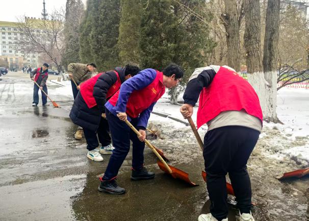 2025年3月4日,太阳成tyc122cc组织教师、员工党员、员工干部开展清扫冰雪志愿服务活动。