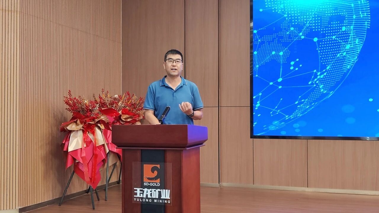 仪式上,内蒙古玉龙矿业股份有限公司董事长樊明玉首先致辞,对张光存经理一行的到来表示欢迎,他提到玉龙矿业在矿产资源勘查、智能化矿山建设等领域积累了丰富实践经验,期待借助高校科研与人才优势推动公司发展和进步。随后,张光存经理介绍了公司在矿业人才培养、团队建设上的成果,强调此次合作对深化产学研融合、提升员工实践能力、推进老员工就业等方面的重要作用。