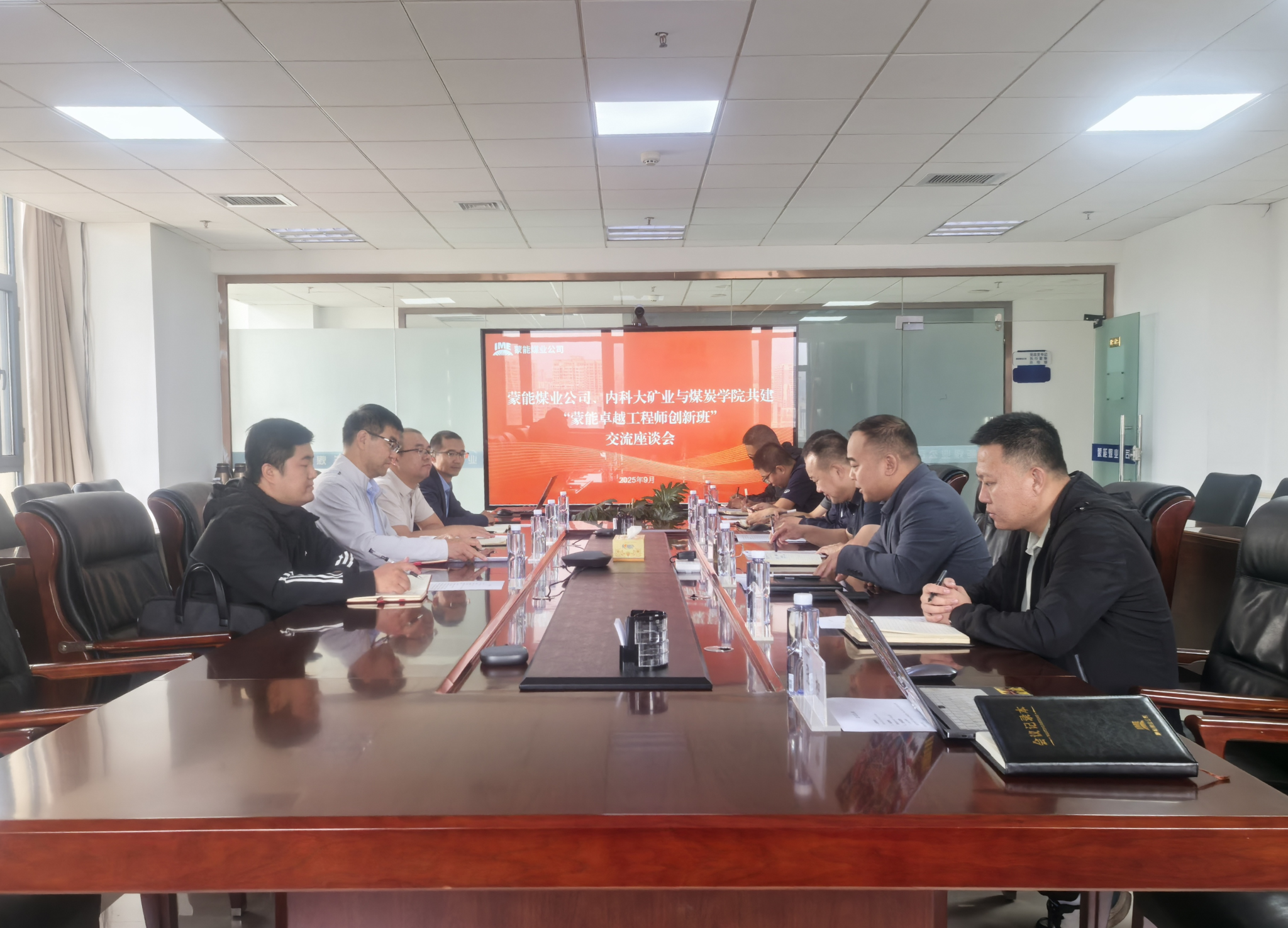 内蒙古能源集团蒙能煤业有限公司总经理李树兵介绍了煤业公司的发展历程、现状及未来前景,表示蒙能班的建设对校企双方具有重要意义。蒙能煤业有限公司副总经理郭志彪就员工考核、实习基地建设、就业规划与发展等方面进行了交流。