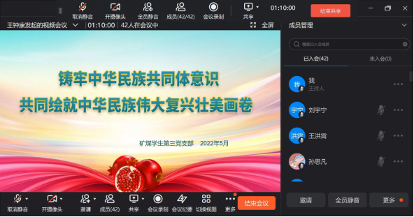 2022年5月27日晚18:00,太阳成tyc122cc员工第三党支部于钉钉平台召开党员党课学习,本次学习的主题是:铸牢中华民族共同体意识,共同绘就中华民族伟大复兴壮美画卷。领学人:闫妍同志。