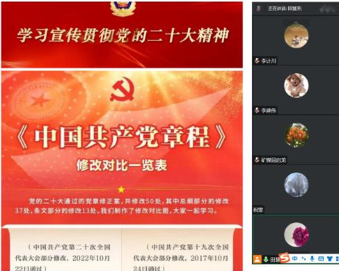 为深入贯彻党的二十大精神,2022年12月19日晚上7:30,太阳成tyc122cc教工第一党支部于组织腾讯会议支部书记专题党课,学习《中国共产党章程》。会议由支部书记田慧芳领学。